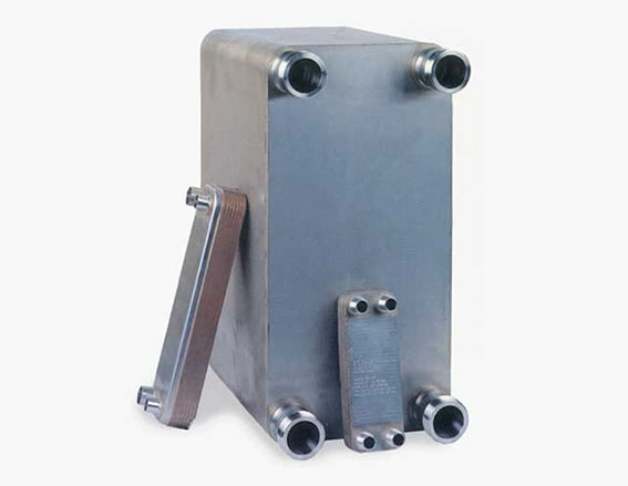 The compact size, low refrigerant charge, and superior heat transfer characteristics of Doucette's Brazed Plate Heat Exchangers make them ideal for evaporator, condenser and sub-cooler applications. Available for virtually any duty, the Brazed Plate Heat Exchangers are available with copper or nickel brazing materials. Standard units have 316 Stainless Steel plates with copper brazing and sweat connections. U.L. listed for 650 psig DWP.